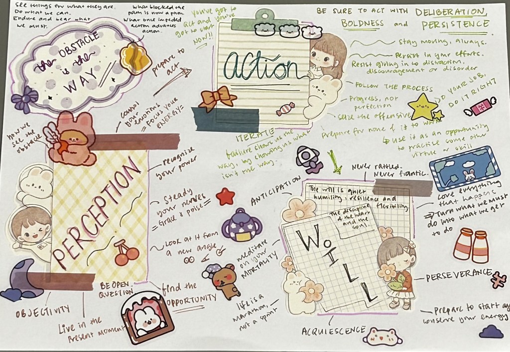 I found this book very motivational and offers powerful insight into how obstacles should be viewed. The messages are centred around three themes: Perception, Action and Will. I drew a mindmap to summarize the key messages and my favourite quotes from the book: